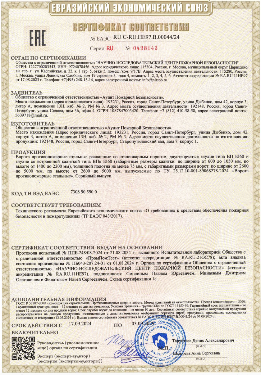 Завод номер №1 в СПб и ЛО по производству противопожарных ворот на заказ